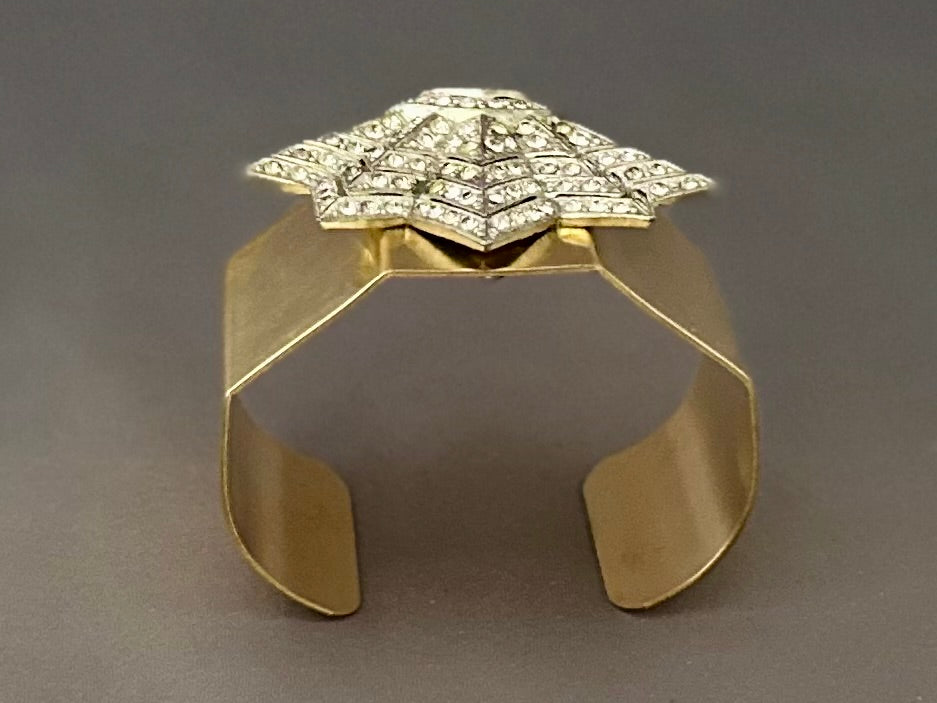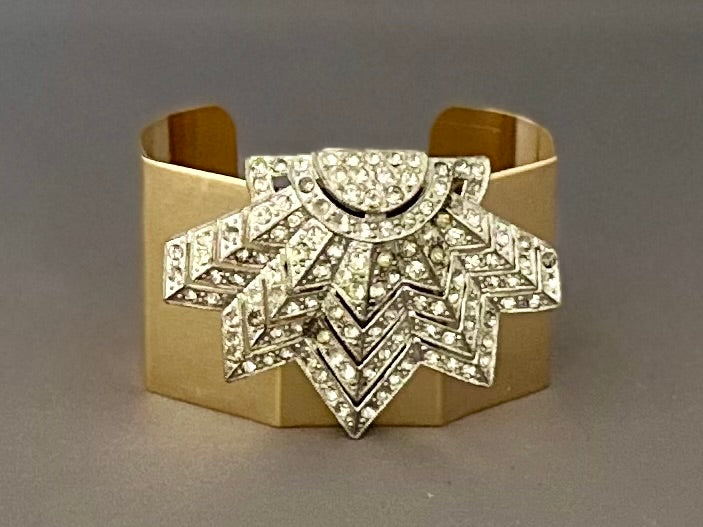 Vintage dress clip.  1 1/2" adjustable brass cuff.