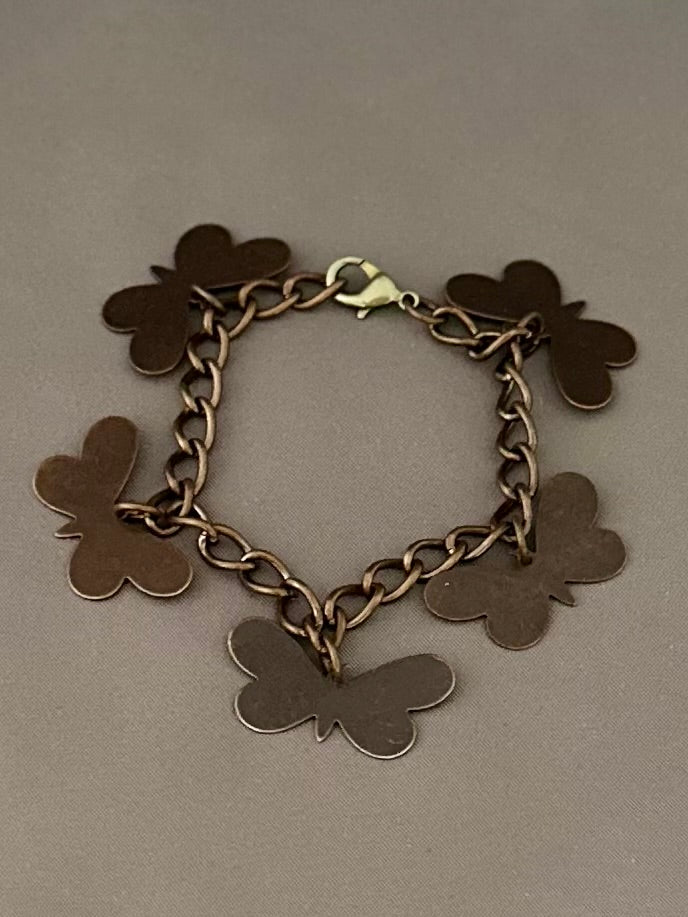 Meet Prairie — A simple, breezy bracelet accented with brass butterfly charms, light as wings on a summer breeze. She carries a hint of nostalgia — a little reminder of the Midwest, open skies, and quiet, wandering days. Minimal, airy, and effortlessly charming — Prairie brings a soft hint of whimsy to your everyday stack.