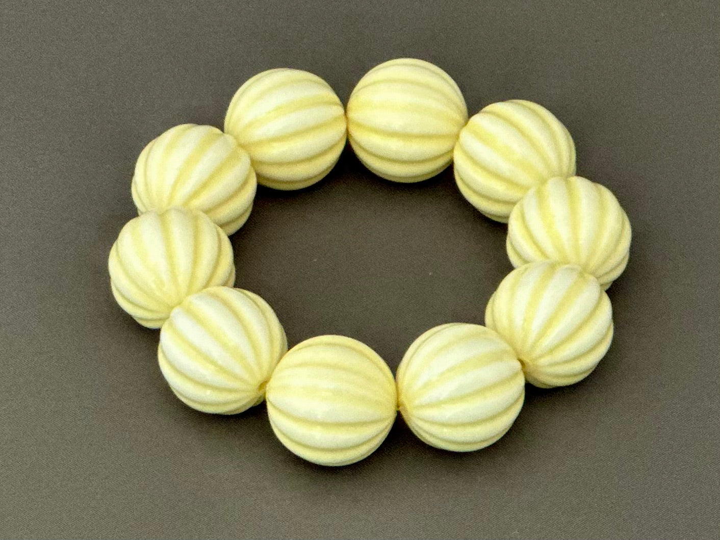 Bright and full of charm, the Lemonade bracelet features round vintage lucite beads in sunny yellow and crisp white stripes. The bold, cheerful pattern adds a fun retro touch, while the lightweight feel makes it easy to wear all day. A playful pop of color that brings vintage personality to any look.