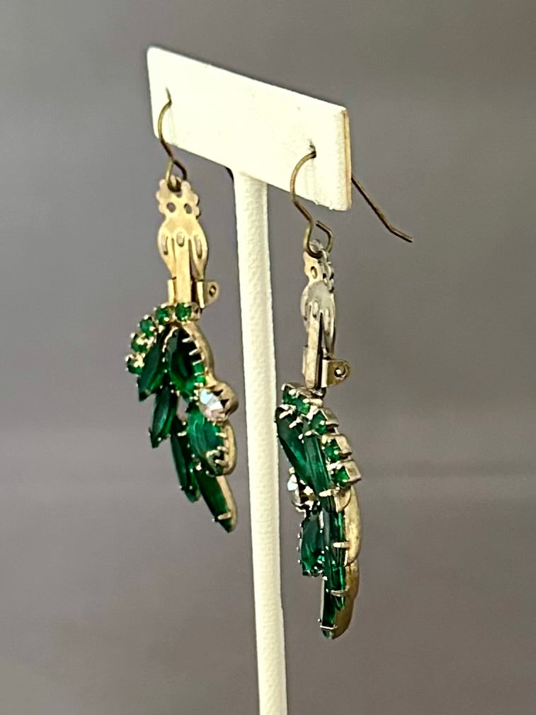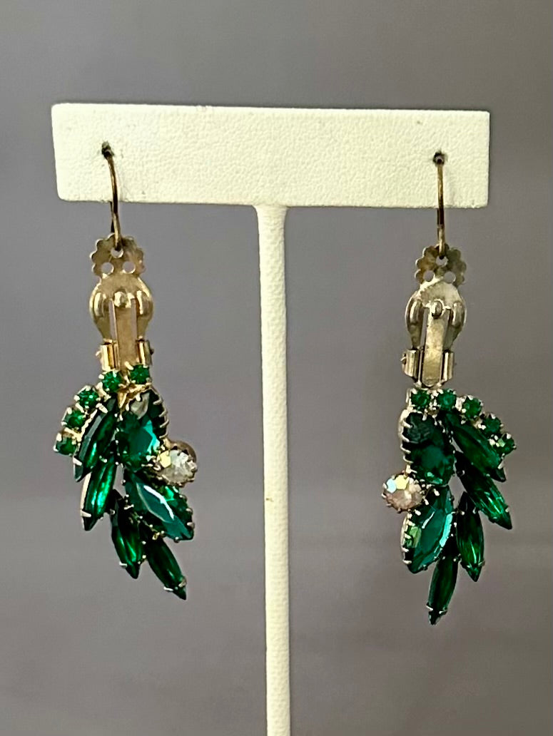 The Esmeralda earrings — Vintage Juliana clip-ons transformed into striking emerald-green drops. The layered marquise stones and bright accents give them that signature Juliana drama — bold, sparkling, and full of movement. Festive, elegant, and unmistakably luxe, the Esmeralda earrings are perfect when you want your look to pop.