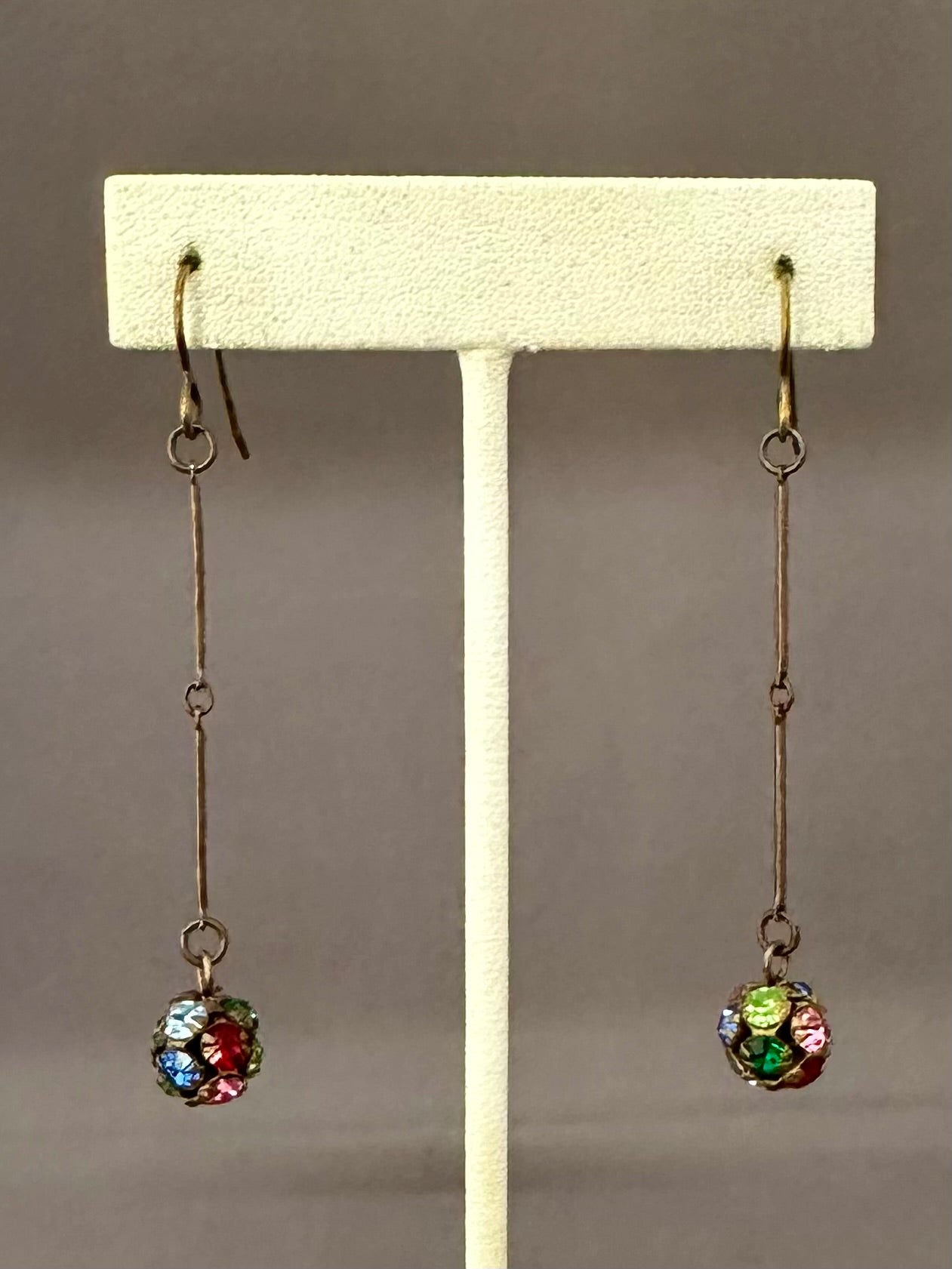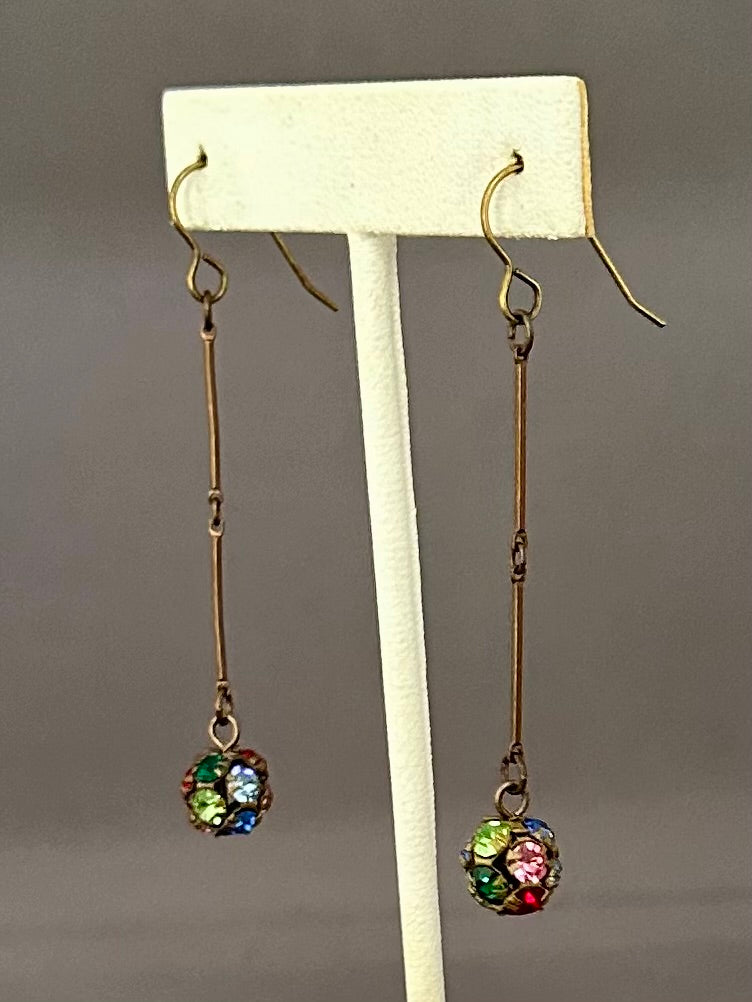 10mm vintage Swarovski crystal ball earrings in a mix of colors. Natural brass accents and hooks.