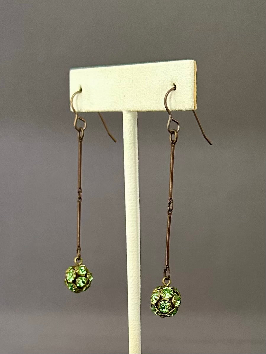 10mm vintage Swarovski crystal ball earrings in peridot. Natural brass accents and hooks.