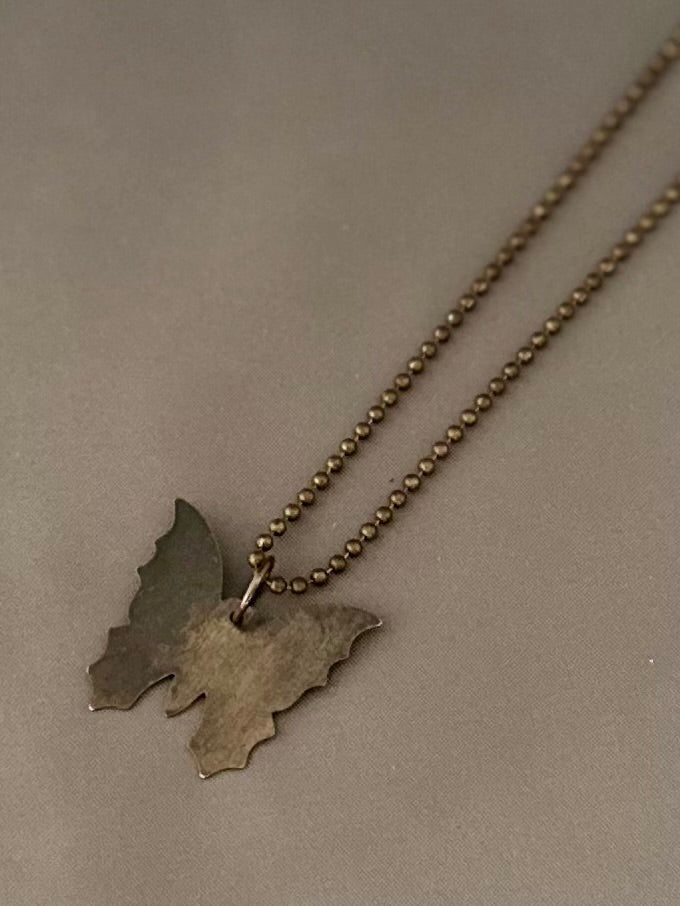 Meet Meadow - a simple brass butterfly pendant strung on a fine ball chain, designed for effortless layering. It’s a little nod to the sunlit meadows of the Midwest and the butterflies that drifted through my childhood summers.